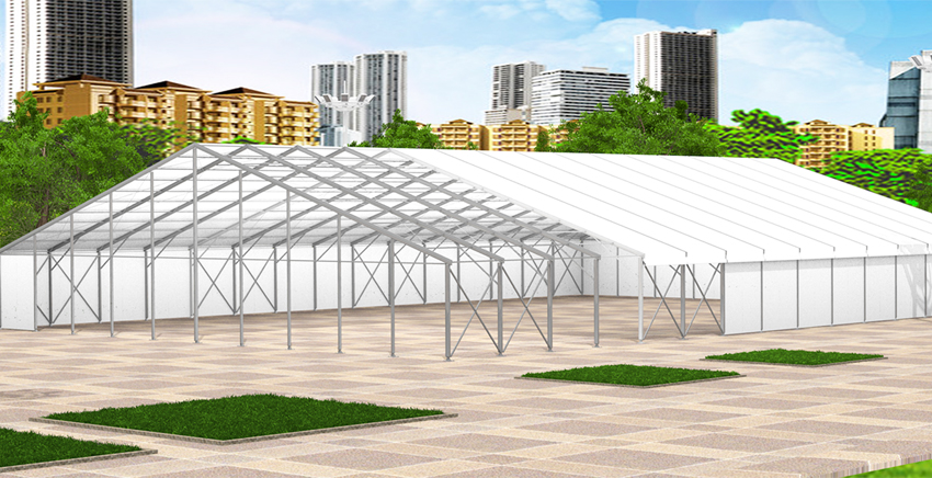 屋脊篷房系列品種繁多,提供從6米到50米的多種跨度。屋脊篷房采用模塊化設(shè)計(jì),篷房長度可按3米或者5米的倍數(shù)延長。屋脊篷房采用高強(qiáng)度鋁合金型材(6061-T6)作為主框架,外圍采用PVC刀刮涂層布做圍擋。此外,屋脊篷房高適應(yīng)性的特點(diǎn),可以讓它融入各種建筑特色,也可以與同類產(chǎn)品,如:如尖頂篷房、多邊型篷房等組合使用。