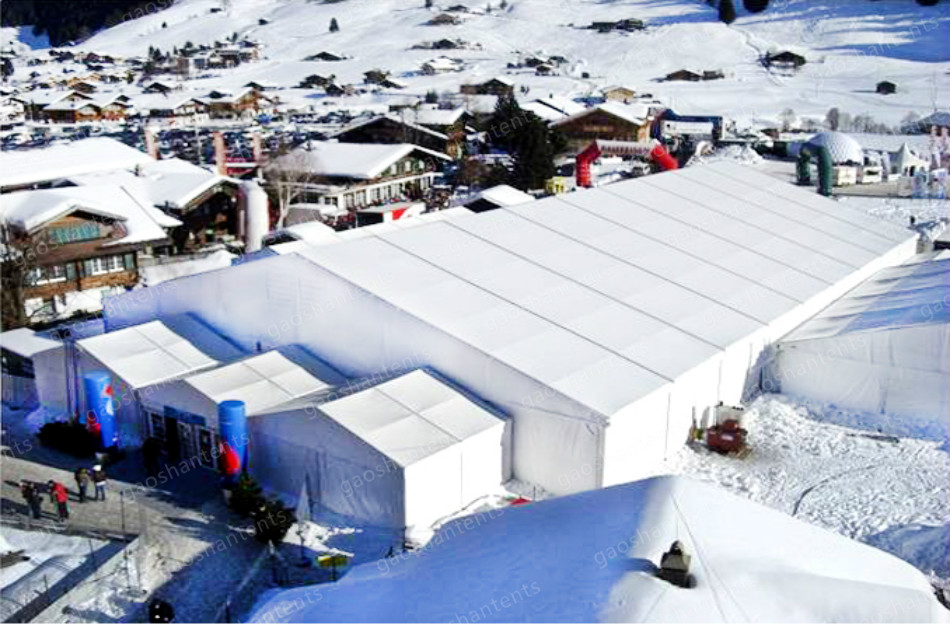 環保篷房采用高強度鋁合金和防火阻燃篷布建設,整體重量輕,對地面要求非常低,一般只需要場地平整即可,部分異形場地甚至可以做到跟隨山勢等條件搭建,尤其適合工礦企業的復雜作業場地。