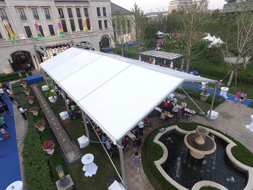 帳篷的面積是固定的,每個(gè)規(guī)格都有固定的尺寸,不會(huì)超過50平米,比較適合旅行及戶外露營,方便攜帶;而篷房屬于單元性組合結(jié)構(gòu),跨度可以從3-50米不等,長度是3或5的倍數(shù)隨意延伸的,多種特定造型滿足不同客戶的需求。且其固定方式也與帳篷有所不同,它可以適用于地面情況是沙地,水泥地,草坪和不能被破壞的地面等。