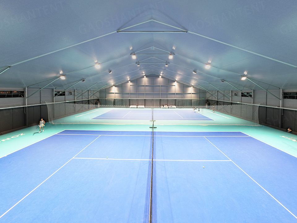 館內(nèi)設(shè)施齊全,配備專業(yè)照明系統(tǒng)和空調(diào)系統(tǒng),頂部篷布加棉設(shè)計(jì)保溫隔熱,顯著降低空調(diào)負(fù)荷。弧形設(shè)計(jì)外觀現(xiàn)代大方,邊高達(dá)7.5米,為球類運(yùn)動(dòng)提供充足空間。