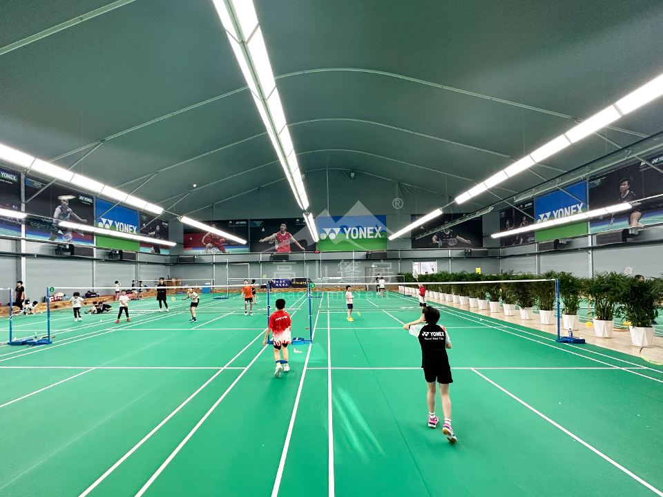 體育篷房采用模塊化設計,跨度可達50米且內部無立柱,完美適配籃球、羽毛球等對空間要求高的運動。通過配置專業地板、照明及通風系統,篷房可輕松切換為多功能場館——上午舉辦籃球賽,下午改造為羽毛球場,晚上轉為文藝演出空間。其結構具備極強的環境適應性:鋁合金框架與PVC篷布可抵抗10級大風及-30℃至50℃的極端溫度,結合雙層保溫層與智能通風系統,實現冬暖夏涼的舒適環境。