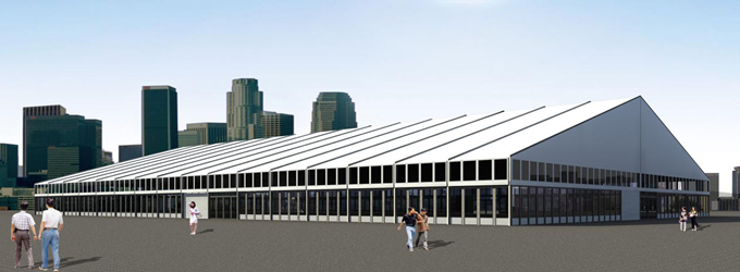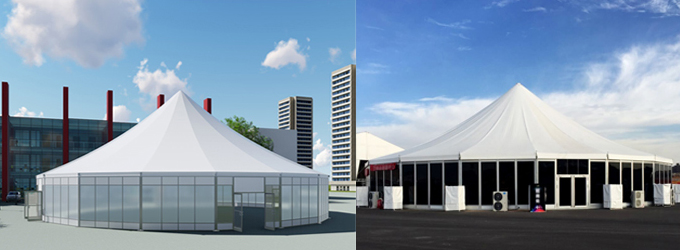 適合搭在較大地面上的多邊形篷房,造型別致,遠遠就能看見,且內部空間寬敞,輕松裝下幾百個標準攤位,尤其適合北方地區的大型展銷會和集市。
