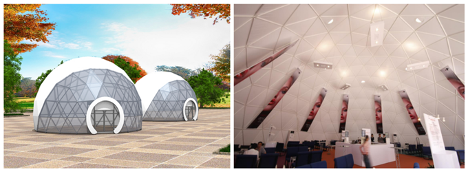 適合主題展覽的球形篷房,內部立體空間大,適合別具匠心的大型展品或者展覽+表演,或者設置多層次的立體展示空間。