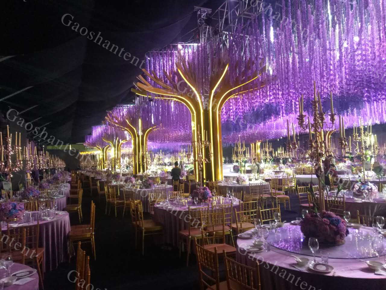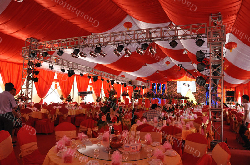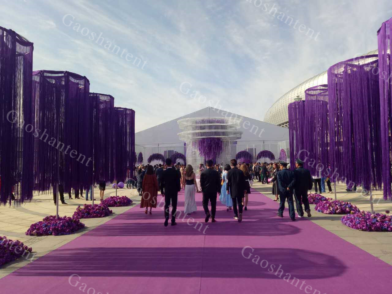 高山篷房還可量身定制進(jìn)行篷房的布置和提供配套服務(wù)。篷房?jī)?nèi)的空調(diào)、地板、燈光等為基本配置,高山還能用布幔、擺設(shè)等將其布置成五星級(jí)酒店大廳,并提供舞美、表演、樂隊(duì)等配套服務(wù)。