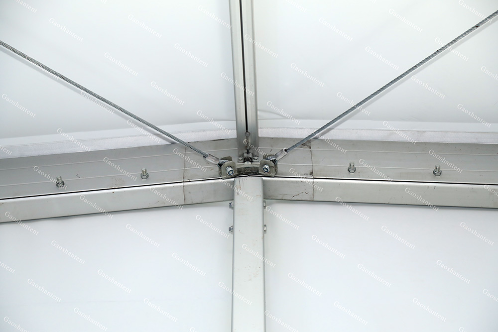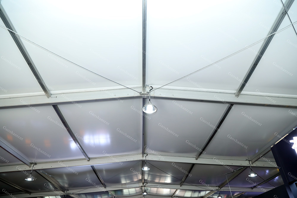 品質是高山篷房的代名詞,細節(jié)是高山篷房的閃光點。公司產品均由技術人員嚴格把控,本次活動的篷房框架選用高強度鋁型主材,鍍鋅鋼部件作連接,所有材料質量如新,篷房內部輔以空調、照明、地臺等配套設施,美感十足。