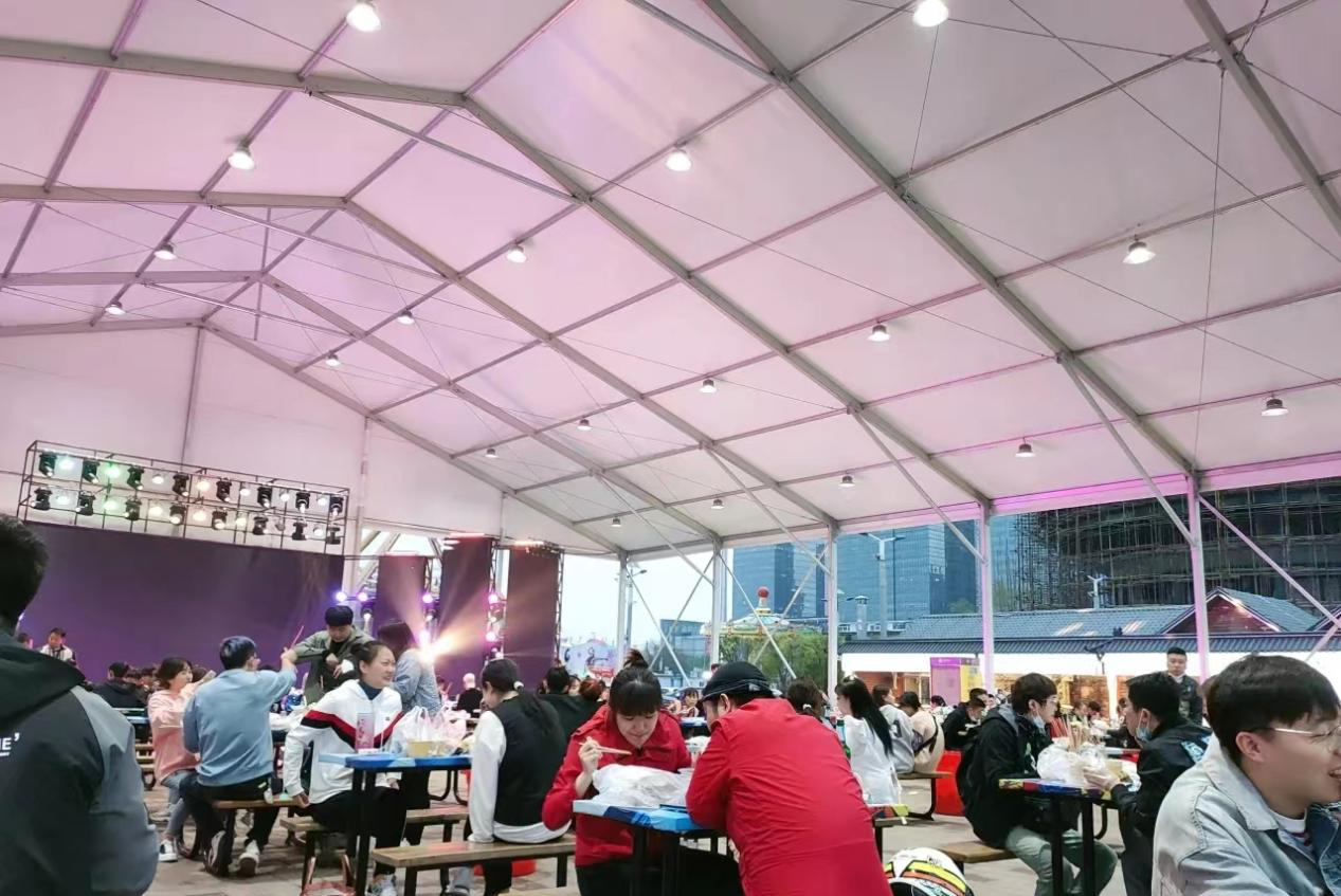 篷房只需將零件運輸?shù)浆F(xiàn)場組裝,無需焊接切割,在短期內快速投入使用,不會阻礙現(xiàn)場的正常秩序,受到越來越多商家的青睞。